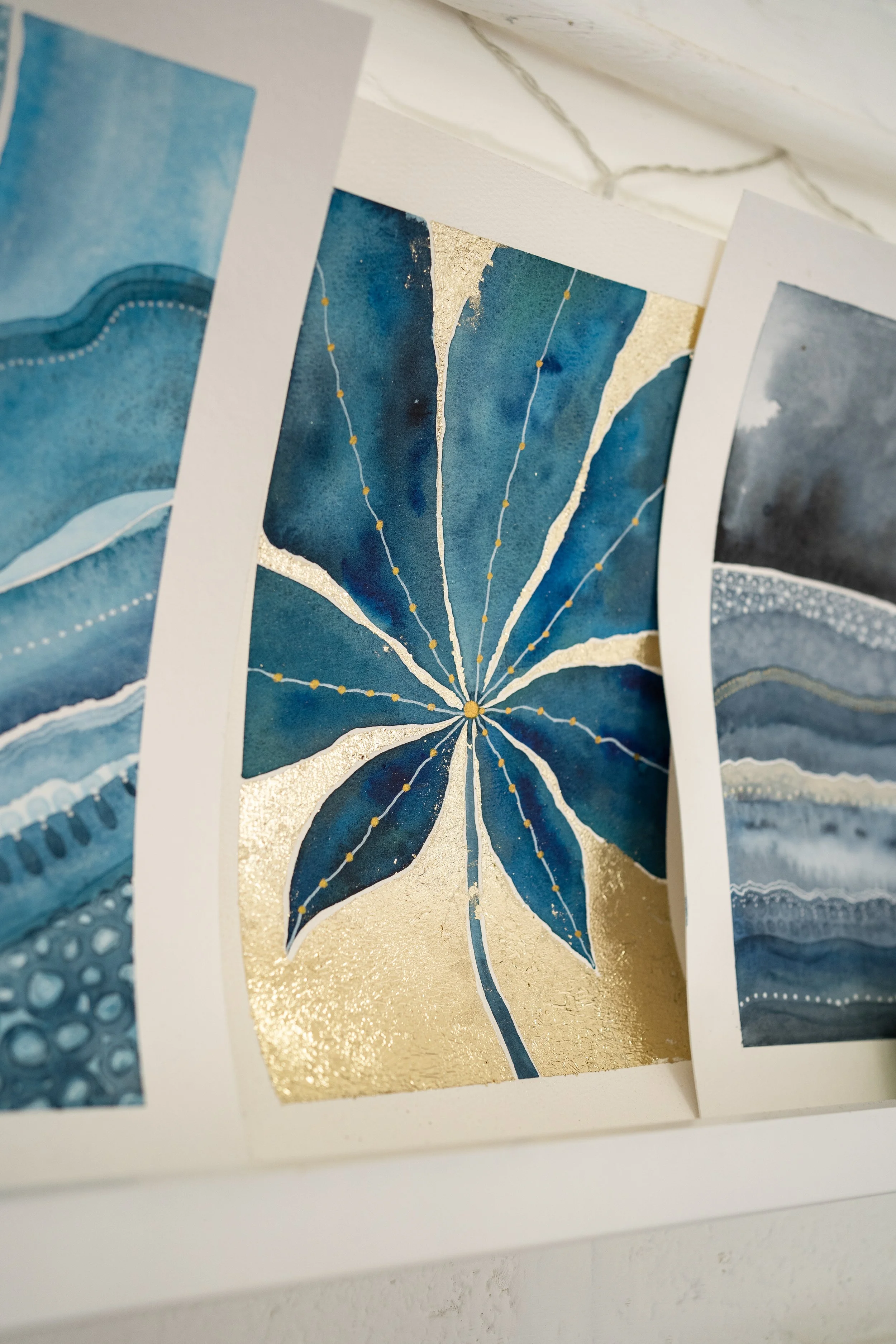 Watercolour and gold leaf - a striking piece that started with a moment of stillness and turned into something full of sparkle.